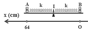 Trên mặt phẳng nằm ngang có hai con lắc lò xo. Các lò xo có cùng độ cứng k, cùng chiều dài tự nhiên là 30 cm. Các vật nhỏ A và B có khối lượng lần lượt là \({m_A} = 150\left( g \right)\) và \({m_B} = 600\left( g \right).\) Ban đầu, A và B được giữ ở vị trí sao cho lò xo gần với A bị dãn 6 cm còn lò xo gắn với vật B bị nén 6 cm. Đồng thời thả nhẹ để hai vật dao động điều hòa trên cùng một đường thẳng đi qua giá I cố định (hình vẽ). Trong quá trình dao động, khoảng cách lớn nhất và nhỏ nhất giữa hai vật có giá trị lần lượt là
