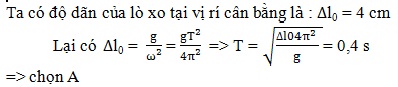Một lò xo có chiều dài ban đầu =25cm , khi treo vật m vào thì lò xo có chiều dài 29 cm.Lấy g = 10 m/s 2 và