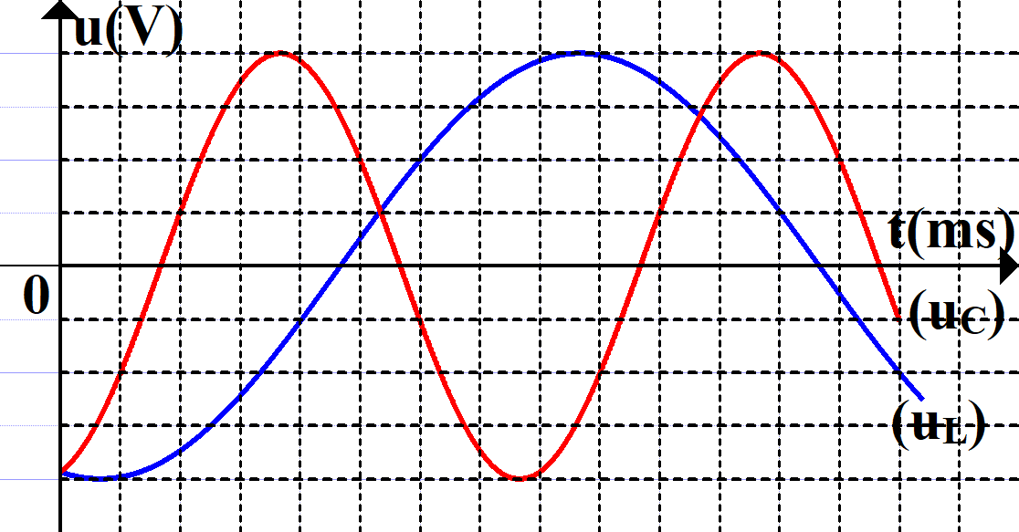 Đặt điện áp \(u = {U_0}\cos \left( {\omega t + {\varphi _u}} \right)\) trong đó \({U_0}\) không đổi, \(\omega \) thay đổi được) vào hai đầu đoạn mạch mắc nối tiếp gồm cuộn cảm thuần L, điện trở thuần R và tụ điện C. Đồ thị biểu diễn điện áp \({u_L}\) giữa hai đầu L khi \(\omega = {\omega _1}\) và điện áp \({u_C}\) giữa hai bản tụ C khi \(\omega = {\omega _2}\) theo thời gian như hình vẽ. Khi \(\omega = 3{\omega _1}\) thì hệ số công suất của mạch là