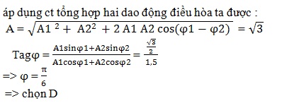 Biên độ và pha ban đầu của dao động tổng hợp có các trị số :