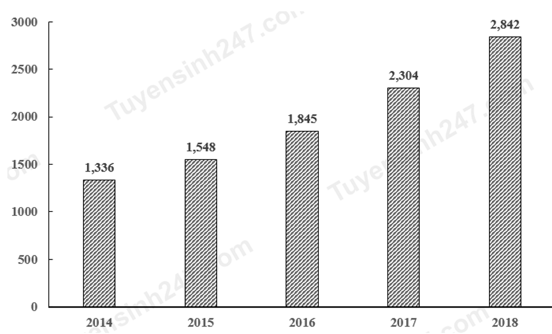 Doanh thu từ bán hàng thương mại điện tử trên toàn thế giới từ năm 2014 đến năm 2018 (đơn tính: tỉ USD) được thể hiện trong biểu đồ sau đây: