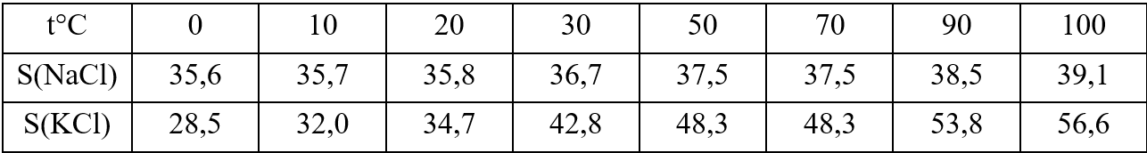 Để tách lấy lượng phân bón Kali người ta thường tách KCl khỏi quặng sinvinit, thành phần chính của quặng là NaCl, KCl. Vì NaCl và KCl có nhiều tính chất tương tự nhau nên người ta không dùng phương pháp hóa học để tách chúng. Thực tế người ta dựa vào độ tan khác nhau trong nước theo nhiệt độ để tách hai chất này. Biết: độ tan (S) của một chất ở nhiệt độ xác định là khối lượng chất đó tan trong 100 gam nước để tạo dung dịch bão hòa
