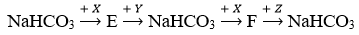 Biết: X, Y, Z, E, F là các hợp chất khác nhau, mỗi mũi tên ứng với một phương trình hoá học của phản ứng xảy ra giữa hai chất tương ứng. Các chất X, Y, Z thỏa mãn sơ đồ trên lần lượt là