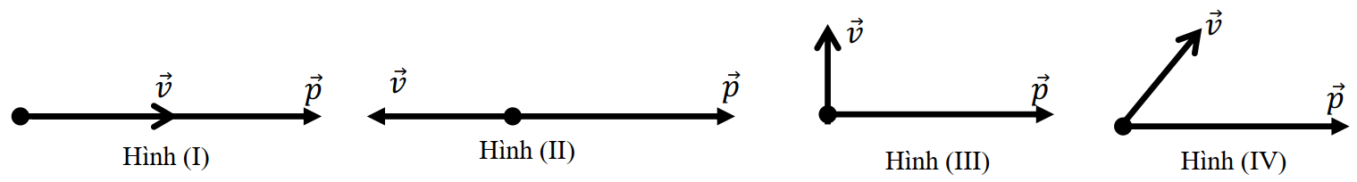Hình nào sau đây thể hiện đúng mối quan hệ giữa véctơ động lượng và véctơ vận tốc của một chất điểm?
