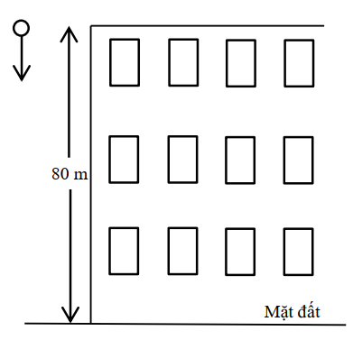 Một quả cầu có khối lượng 0,6 kg được thả rơi từ đỉnh của một tòa nhà cao 80 m. Lấy \(g
