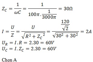 Đoạn mạch gồm điện trở R = 30 Ω nối tiếp với tụ điện , đặt vào hai đầu mạch