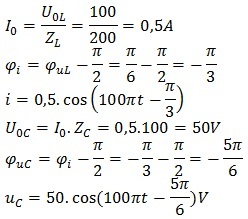Một đoạn mạch gồm một tụ điện có dung kháng ZC = 100 Ω và một cuộn dây thuần cảm có