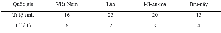 Cho bảng số liệu: TỈ LỆ SINH VÀ TỈ LỆ TỬ CỦA MỘT SỐ QUỐC GIA NĂM 2021 (Đơn vị:
