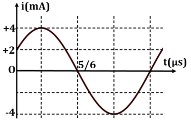 Dòng điện trong mạch dao động lí tưởng có cuộn dây có độ tự cảm L và tụ có điện dung 4 nF. Đồ thị phụ thuộc dòng điện vào thời gian như hình vẽ. Lấy \({\pi ^2} = 10\). Độ tự cảm của cuộn dây là