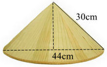 2) Một chiếc nón lá có dạng hình nón với đường kính đáy bằng \(44{\rm{\;cm}}\), độ dài đường sinh là \(30{\rm{\;cm}}\). Người ta lát mặt ngoài xung quanh hình nón bằng 3 lớp lá khô. Tính diện tích lá cần dùng để tạo nên một chiếc nón lá như vậy.