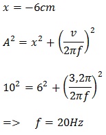 Một vật dao động điều hoà với biên độ 10(cm). Ở thời điểm khi li độ của vật là x = -6(cm) thì vận tốc của nó là 3,2p(m/s). Tần số dao động là: