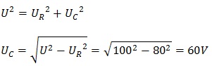 Mạch điện xoay chiều gồm điện trở R = 30 Ω nối tiếp với một tụ điện C . Cho biết điện áp hiệu dụng giữa hai đầu mạch bằng 100V, giữa hai đầu tụ điện bằng 80V. Điện áp hiệu dụng hai đầu điện trở R bằng