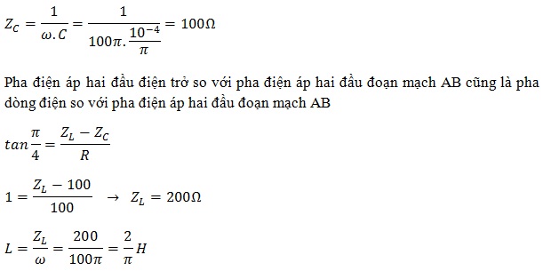 so với điện áp hai đầu đoạn mạch AB thì độ tự cảm của cuộn cảm bằng