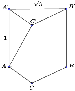 Cho hình lăng trụ đều \(ABC.A'B'C'\) có đáy \(ABC\)là tam giác đều cạnh \(\sqrt 3 \) và \(AA' = 1\).