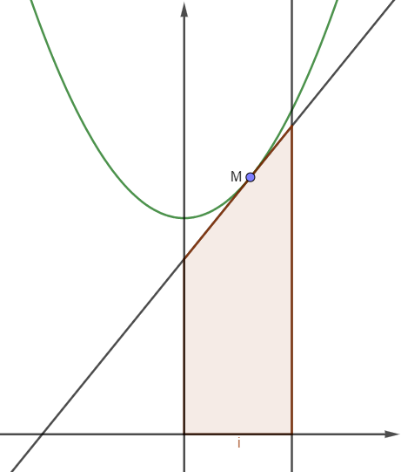 Cho Parabol \((P):y = {x^2} + 2\) và \(\Delta :ax + by + c = 0,\,(a;b;c \in \mathbb{R})\) là một tiếp tuyến của \((P)\). Xét hình phẳng \(D\) bị giới hạn bởi \(\Delta ;x = 0;x = 1;y = 0\). Diện tích \(D\) đạt giá trị lớn nhất khi \(a + b + c\) bằng