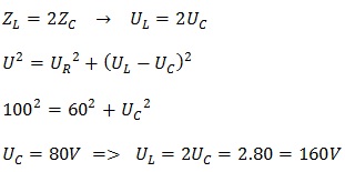 Cho một đoạn mạch xoay chiều nối tiếp gồm điện trở R, cuộn dây thuần cảm L và tụ C , đặt vào hai đầu đoạn mạch hiệu điện thế
