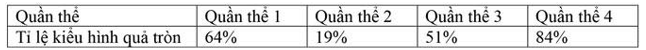 Hình dạng quả ở một loài thực vật do một gen có 2 alen trên NST thường quy định. Alen quy định tính trạng quả tròn trội hoàn toàn so với alen quy định quả dài. Các quần thể đang ở trạng thái cân bằng di truyền có kiểu hình quả tròn với tỉ lệ như sau: