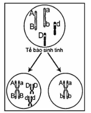 Ở một loài động vật, quan sát quá trình giảm phân của một tế bào sinh tinh, người ta ghi nhận lại diễn biến nhiễm sắc thể được mô tả bằng hình vẽ bên dưới. Các chữ cái A, a, B, b, D, d biểu diễn cho các gen nằm trên các nhiễm sắc thể. Ngoài các sự kiện được mô tả trong trong hình bên dưới thì các sự kiện khác diễn ra bình thường. Trong số các nhận xét được cho dưới đây về sự giảm phân của tế bào sinh tinh này, có bao nhiêu nhận xét đúng?