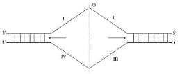 Hình bên mô tả sơ đồ một đơn vị nhân đôi ADN. Mũi tên chỉ chiều di chuyển của enzim tháo