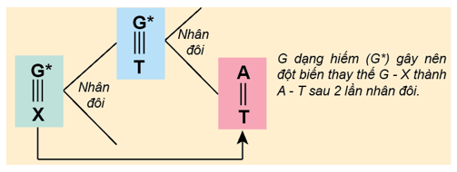 Guanin dạng hiếm (G*) kết cặp với timin (T) trong quá trình nhân đôi ADN, tạo nên dạng đột