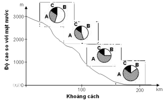 Khi nghiên cứu một loài ruồi giấm có 3 nòi A, B, C tại một khu vực địa lý, người ta lập được biểu đồ bên về sự phân bố số lượng cá thể. Khi nhận xét về sự phân bố các loài, phát biểu nào sau sai?