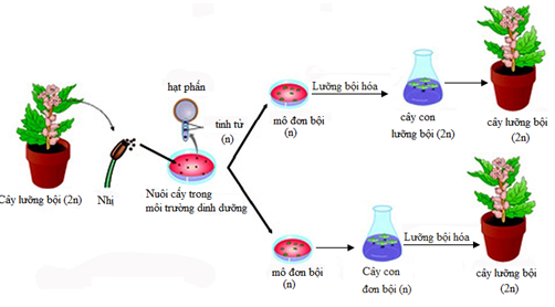 (3) Các dòng đơn bội qua chọn lọc được lưỡng bội hóa bằng 2 cách.