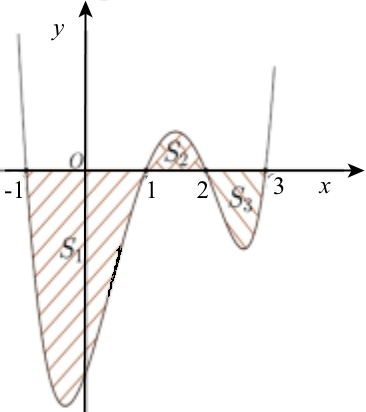 Cho hàm số \(y = f\left( x \right)\) có đồ thị trong hình sauGọi \({S_1},{S_2},{S_3}\) là diện tích