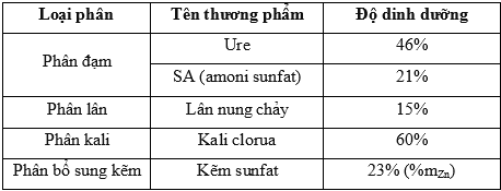 ho bảng thông tin một số loại phân bón sau:Một người nông dân cần bón cà phê với lượng như