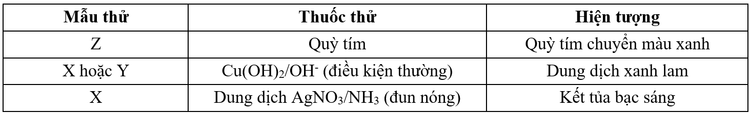 (b) Y không có phản ứng tráng bạc.