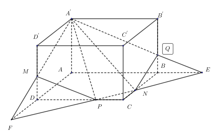 Cho hình lập phương \(ABCD.A'B'C'D'\). Gọi \(N,P\) là các điểm lần lượt thuộc các cạnh \(BC\) và
