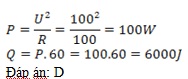 Hiệu điện thế xoay chiều giữa hai đầu điện trở R = 100 cú biểu thức : .Nhiệt lượng tỏa