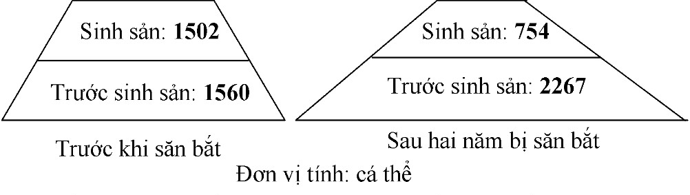 Cấu trúc tuổi của quần thể có tính đặc trưng và phụ thuộc vào môi trường sống. Khi điều tra quần thể chim trĩ (Phasianus colchicus) tại các khu rừng trên đảo Hawaii sau hai năm bị săn bắt, người ta thu được tháp tuổi như hình sau. Trong thời gian điều tra, môi trường không có biến động lớn. Phát biểu nào sau đây sai?