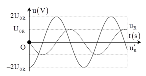 Đặt điện áp xoay chiều \(u = {U_0}\cos \left( {\omega t + \varphi } \right)\,\,\left( V \right)\) vào hai đầu đoạn mạch gồm R, L, C mắc nối tiếp thì điện áp tức thời giữa hai đầu điện trở là \({u_R}\). Sau khi nối tắt tụ C thì điện áp tức thời giữa hai đầu điện trở là \({u_R}'\). Đồ thị biểu diễn \({u_R}\) và \({u_R}'\) theo thời gian như hình vẽ. Hệ số công suất của mạch sau khi nối tắt tụ C bằng