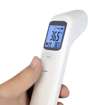 Sự phụ thuộc vào nhiệt độ của bước sóng điện từ theo hệ thức Vien: \(T.{\lambda _{\max }} = 2900\mu m.K\) được dùng vào việc chế tạo các nhiệt kế thường dùng hằng ngày như nhiệt kế hồng ngoại, cũng như các nhiệt kế trong thiên văn để đo nhiệt độ bề mặt của các thiên thể. Xét một nhiệt kế hồng ngoại khi đo nhiệt độ cơ thể người như hình vẽ. Bước sóng hồng ngoại do cơ thể người phát ra bằng xấp xỉ bằng