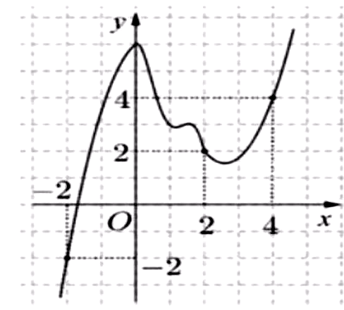 Cho hàm số \(y = f\left( x \right)\) có đạo hàm liên tục trên \(\mathbb{R}\) và có đồ thị như hình vẽ bên dưới. Giá trị của biểu thức $\int_0^4 f^{\prime}(x-2) d x+\int_0^2 f^{\prime}(x+2) d x$ bằng bao nhiêu ?