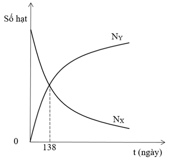 Chất phóng xạ X phân rã theo phương trình $\left. X\rightarrow\alpha + Y \right.$. Ban đầu (t = 0) trong