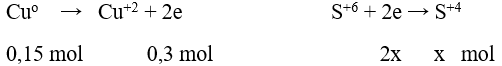 Cho 9,6 gam kim loại Cu tác dụng hết với dung dịch H2SO4 đặc, nóng dư sinh ra x mol SO2 là sản phẩm khử duy nhất. Giá trị của x là