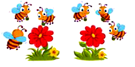 Dựa vào các đối tượng là bông hoa và những chú ong để viết các phép tính
