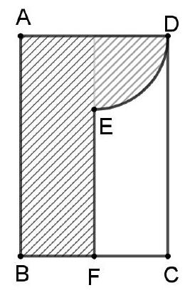 Một vật trang trí có dạng khối tròn xoay tạo thành khi quay miền \(\left( R \right)\) được giới hạn bởi đường gấp khúc \({\rm{DABFE}}\) và cung tròn \({\rm{ED}}\) (phần gạch chéo trong hình bên) xung quanh trục \({\rm{AB}}\). Biết \({\rm{ABCD}}\) là hình chữ nhật cạnh \({\rm{AB}} = 3{\rm{\;cm}},{\rm{AD}} = 2{\rm{\;cm}};F\) là trung điểm của \({\rm{BC}}\); điểm \({\rm{E}}\) cách \({\rm{AD}}\) một đoạn bằng \(1{\rm{\;cm}}\). Tính thể tích của vật trang trí đó, làm tròn kết quả đến hàng phần mười.