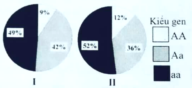 I. Tần số alen A ờ quần thể I bằng với tần số alen a ở quần thể II.