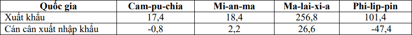 TRỊ GIÁ XUẤT KHẨU VÀ CÁN CÂN XUẤT NHẬP KHẨU CỦA MỘT SỐ QUỐC GIA NĂM 2021