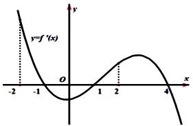 Cho hàm số \(y = f\left( x \right) = a{x^4} + b{x^3} + c{x^2} + dx + e\) (với \(a \ne 0\) ) có đồ thị của hàm số \(y = f'\left( x \right)\) là đường cong trong hình vẽ dưới đây