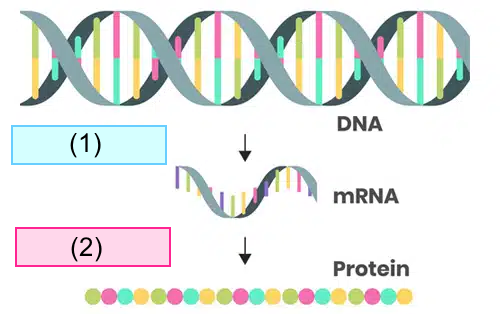 Hình 1 minh họa cơ chế di truyền ở sinh vật nhân sơ, (1) và (2) là kí hiệu các quá trình của cơ chế này.