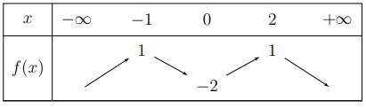 Cho hàm số \(y = f\left( x \right)\) là hàm số đa thức, có bảng biến thiên như hình vẽ. Hàm số