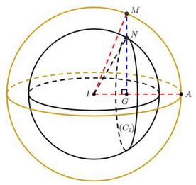 Trong không gian \(Oxyz\), cho mặt cầu \(\left( S \right):{(x - 1)^2} + {(y - 2)^2} + {(z - 3)^2} = 9\) và điểm \(A\left( {0;1; - 2} \right)\). Từ \(A\) kẻ các tiếp tuyến đến \(\left( S \right)\) với các tiếp điểm thuộc đường tròn \(\left( {{C_1}} \right)\). Từ điểm \(M\) nằm ngoài \(\left( S \right)\) và nằm trong mặt phẳng chứa đường tròn \(\left( {{C_1}} \right)\), kẻ các tiếp tuyến đến \(\left( S \right)\) với các tiếp điểm thuộc đường tròn \(\left( {{C_2}} \right)\). Biết rằng nếu \(\left( {{C_1}} \right)\) và \(\left( {{C_2}} \right)\) có cùng bán kính thì \(M\) luôn thuộc một đường tròn cố định. Bán kính \(r\) của đường tròn đó bằng?