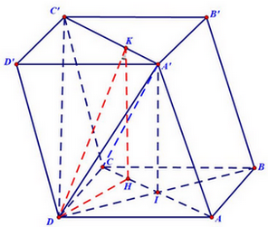 Cho hình lăng trụ \(ABCD \cdot A'B'C'D'\) có đáy \(ABCD\) là hình chữ nhật với \(AB = 2a,AC = 4a\) và