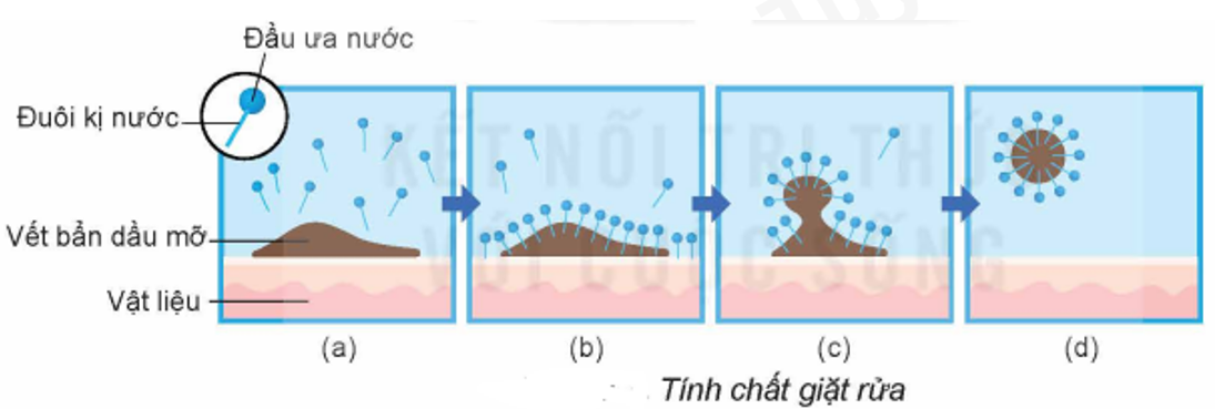 Tính chất tẩy rửa của xà phòng, chất giặt rửa được giải thích như hình bên dưới: