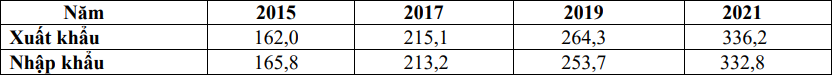 GIÁ TRỊ XUẤT NHẬP KHẨU CỦA NƯỚC TA, GIAI ĐOẠN 2015 – 2021