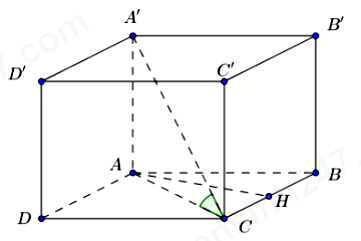Cho hình lăng trụ đứng \(ABCD \cdot A'B'C'D'\) có đáy \(ABCD\) là hình thoi, \(AB = AC,\widehat {A'CA} = {30^ \circ }\) và \(AA' = a\) (tham khảo hình bên dưới).