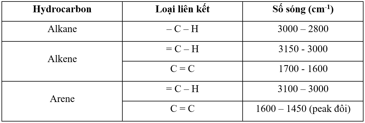Cho bảng tín hiệu phổ hồng ngoại (IR) của một số loại liên kết:
